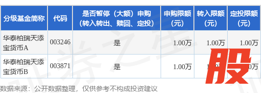 本站消息,11月11日华泰柏瑞基金管理有限公司发布《华泰柏瑞天添宝货币市场基金调整机构投资者大额申购及大额转换转入业务金额限制的公告》。公告中提示,为保证本基金的稳定运作,保护基金份额持有人利益,自2025年11月12日起华泰柏瑞天添宝货币市场基金调整机构投资者大额申购及大额转换转入业务金额限制,申购、转换转入上限金额为1.0万元,下属分级基金调整明细如下: