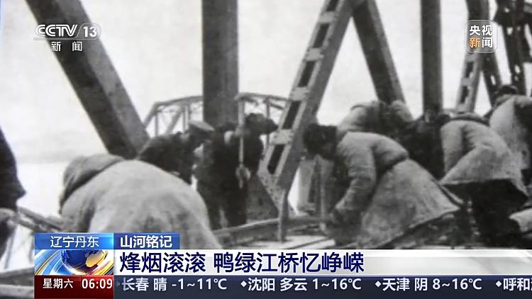 总台记者 闫崎峰:我现在是在中朝友谊桥上,也就是经常说的鸭绿江上桥。在旁边就是鸭绿江断桥,它也通常被称为鸭绿江的下桥。在1950年11月8日到14日,美军出动了100多架战斗机,对这座桥进行了轰炸。在此期间,这座桥被炸断。