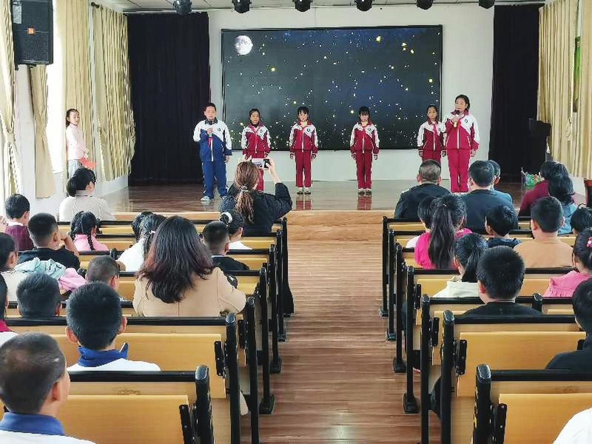 活动中,各年级学子轮番登场,带来了一场精彩纷呈的阅读成果盛宴。一年级的“小小朗读者”以清澈的童声诠释了“中国红”的信仰底色;二年级学子诵读《繁星》,用纯净的语言传递母爱与童真的深情;三年级同学以《书里藏着小宝藏》为题,将阅读比作“寻宝之旅”,生动地分享了书中的奇妙经历;四年级学子带领师生“赴会千年,共游山海”,通过奇幻神话解读先民智慧。最后,师生共同走进《夏洛的网》,在温柔的叙事中感受生命间的承诺与深情,现场氛围愈发温馨动人。各年级学子展示或诵读经典、或分享感悟、或演绎故事,既展现了不同学段的阅读特色,更传递出文学作品的独特魅力。